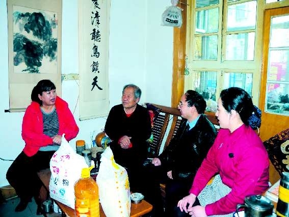 1日,烟台市毓璜顶东社区居委会的工作人员来到辖区的困难党员家中,送上了米、油等生活用品。