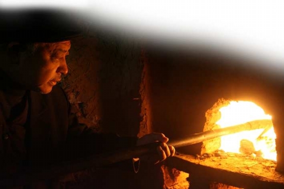 制陶老匠人尹显德今年60岁,跟窑炉打了30多年的交道。自从有记忆,他就被泥巴包围着。在制坯房里,父亲踩着轮盘,用灵巧的手掬起一捧泥巴,不一会儿,软绵绵的泥巴像有了骨头,站立了起来,变成了精美的花盆、实用的大盆。尹显德童年时期,正好是该村土陶业最繁盛的时候,窑炉是各家各户最常见的装备,整个昌邑独此一村生产土陶日用品。他们的产品销往潍坊各地,并覆盖周边胶州等地。