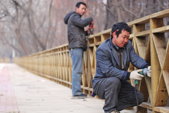 2日,在延安一路,安装一新的木栈道非常美观、漂亮。据了解,这条木栈道从动物园一直延伸到园林局,总长202米,目前工程已经进入收尾阶段。根据规划,安装好的木栈道与小西湖周围的景观水系遥相呼应、自然宜人。