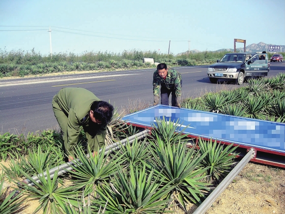 为保证干线公路安全畅通,近日,荣成公路局在环海路开展非公路标志清理专项行动,共清理在公路建筑控制区内私设的可移动小型非公路标志十余块。同时协调及督促各产权单位,对行政许可范围内大型非公路标志整修维护。