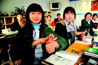 12月3日是世界残疾人日,临沂市特殊教育中心聋高一年级的杨小雪和同学们打出了手语“”。小图为2日,临沂市人民医院组织专家、医护人员来到市区部分残疾人家中,为残疾人进行恢复治疗。 记者 马峰 刘海蒙廖杰 摄