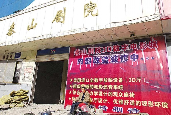 “记得小时候,泰安一共有四家电影院:泰山影剧院、泰山剧院、大众影院和泰安电影院。占主要地位的是位于金山路上的泰山影剧院,可能是因为它还是泰安的‘人民大会堂’,所以政府和市民都比较重视吧。”家住金山路的市民李先生告诉记者,后来,其他三家影剧院逐渐落寞下来,现在只有泰山影剧院和位于财源大街东段正在改造的泰山剧院还在经营了。