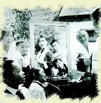 自述:1974年,章丘县(当时,章丘县属泰安行署管辖),毛泽东思想宣传队深入农村宣传毛泽东思想,演出《沙家浜》、《红灯记》、《奇袭白虎团》等八个“样板戏”。在那个年代里,全国人民齐动员,营造了一个举国上下学习毛主席著作的新高潮。当时口号是:“毛主席著作天天学,一天不学走下坡,两天不学事做错,三天不学没法活;读毛主席的书,听毛主席的话,做毛主席的好战士”。图为演出前村民们在观看演员化妆时的情景。
