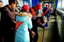 5日上午,山东交通学院信息工程系“暖阳义工”志愿者服务队来到BRT公交站台,与站务员李洋、陈昊琦、殷倩等一起开展志愿服务。 本报记者 王光照 通讯员 佘丽敏 摄