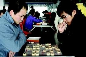 5日,在潍坊医学院内,棋手正在进行象棋对战。来自潍坊四家高校的48名棋手在潍坊医学院内,展开了一场棋艺对决,比赛项目包括男子中国象棋、女子中国象棋、跳棋、五子棋等。