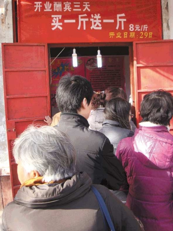 孙女士感觉自己受了骗,转身离开,没有再买该店的食品。“我从大老远就看到条幅上写着‘买一斤送一斤’,怎么买的时候就变成‘买一斤送半斤’了呢?”。孙女士说,她看到打折促销,才冒着风在门口等了半个小时,但是真轮到买的时候才被告知优惠活动已经变了。