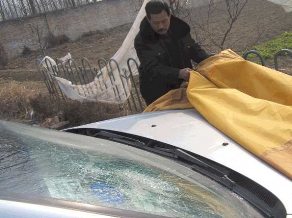 在茌平县公安局看守所,曾祥路女婿刘军的一辆银白色轿车四面玻璃及车门,均有不同程度的砸裂和变形。另外一黑色越野车一面后视镜被砸坏。两辆车上均贴着茌平县公安局的封条。
