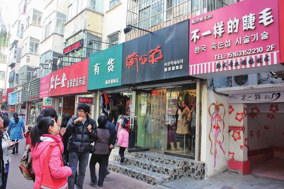 5日上午,由山东大学韩国学院韩语专业学生组成的“挑错小分队”开始走上街头挑错。小分队三个小时走访了475处有韩语的商家,共发现不规范韩语标牌53处。图为小分队在给街头店铺的韩语标牌挑错。