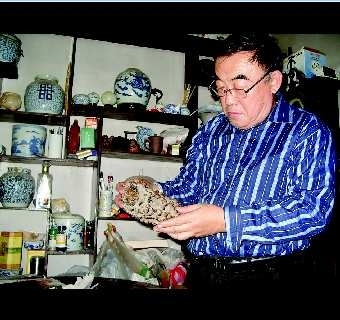 朱运峰收集的古玩装了几个箱子,在古玩市场工作那么多年,使他对青花瓷、玉器、字画等有相当的了解。《鉴宝》、《去伪存真》等有关收藏的电视节目是他必看的,家里还放着几十本有关古代字画、玉器的书籍。