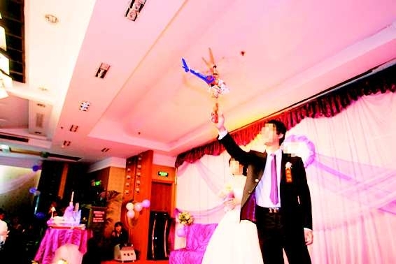 上午11时许,当记者以订婚宴者的身份来到金海湾酒店时,该酒店的两处大型宴会厅内正在分别举行着两场婚礼,鲜花、礼炮、乐队,非常热闹。