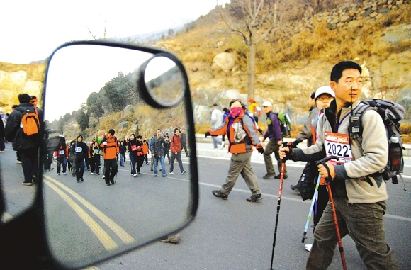 4日,第二届“爱我泰山”环泰山60公里大徒步活动举行。活动以泰山天地广场为起点,向西沿环山路,途经黑风口、和尚庄等,沿泰山环绕一周后返回起点。本次活动吸引了来自全国各地的703名户外运动爱好者参加。本报记者 刘丽 摄