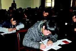 12月5日上午,临沂市2010年度市直退役士兵安置文化考试举行,参加此次考试的2009年冬季退役士兵和2010年春季转业士官共176人,将20个市直事业单位安置岗位。图为考试现场,参加考试的退伍兵正在答题。 通讯员 杨西高 记者 周广聪 摄