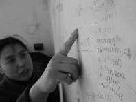 在墙上记者看到了这个电话号码,在这个号码周围,还有许多电话也同样被记在墙上,孙秋莲告诉记者,这些都是各地爱心人士的电话,他们有的为柯璐提供偏方,有的给他们鼓励(上图)。这面墙有些发黑,显然,这面记满电话号码的墙时常被触摸。