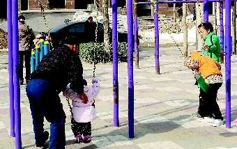 在这暖暖的冬日,小朋友们纷纷在家长的陪同下到户外玩耍,小小的秋千承载着孩子无尽的欢乐。