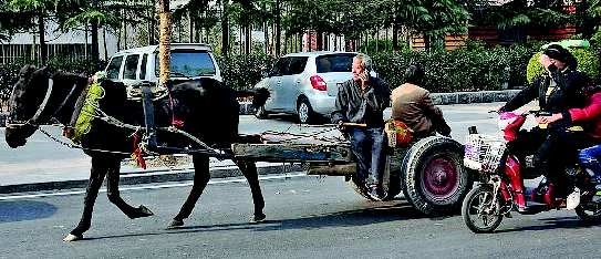 时间:2010年11月2S日器材:尼康D90自述:恰巧马车、电动自行车、汽车同时纳入一个画面。点评:幸福生活就是这样一步步走过来的。(拍客奖150元)
