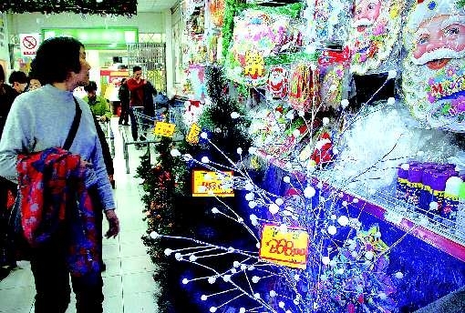 6日,辽河路一超市内,圣诞树、圣诞老人、圣诞帽……各种圣诞商品被摆在了显眼的位置。据介绍,今年的圣诞商品在价格上与去年持平,但是样式比去年多了不少。 本报见习记者 郑美芹 张大宁 摄影报道