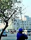 12月3日,在幸福路永和广场附近,两名保洁员正在用钩子摘除挂在树枝上的塑料袋。近期,幸福街道组织10余名保洁员对幸福路、幸福中路等主干道沿线两侧人行树上的塑料袋进行了清理。本报记者鞠平通讯员王元强摄