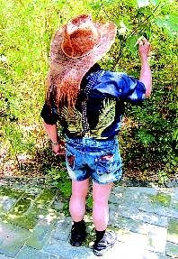 作品描述:这位穿着另类,正在公园里摆弄树叶的人并非儿童,而是一个成年小矮人,瞧他头上戴的那顶留着“金发”的草帽,绝对能把你雷倒,潮人就潮人,果然与众不同。