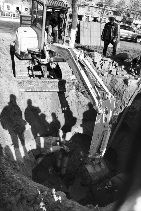 12月6日,建设路伟业中华苑附近,聊城恒润热力公司的工作人员在安装供暖管道。据了解,伟业中华苑入住两年来,一直没有通暖气。这段管道修好后,明年1月左右伟业中华苑能供暖。