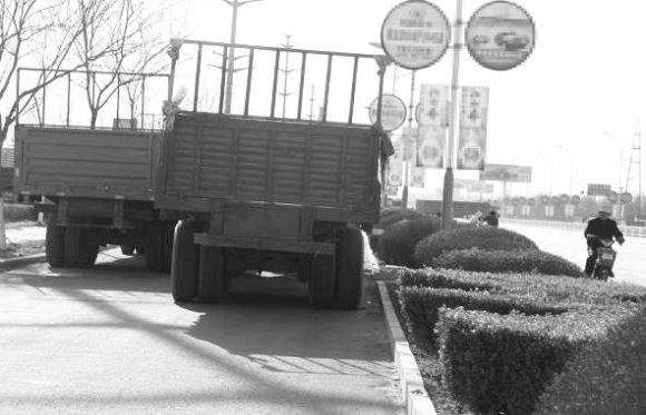 12月6日9点左右,光岳路加油站附近,非机动车道上停着两辆无牌照的货车,把非机动车道堵得严严实实,非机动车被迫到机动车道上行驶。