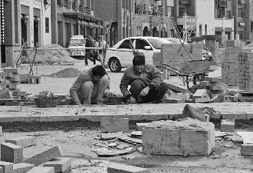 7日,记者从南岸街施工现场看到,工人正紧张铺筑大理石板。据介绍,南岸街总长460米,此次铺筑的大理石板名为“芝麻灰”,与沿街建筑风格形成一体,预计本月底可铺筑完毕。