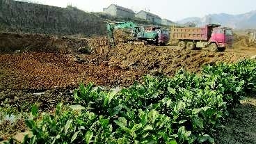 在苏家村砖厂土地复垦现场,也是一片繁忙景象。苏家村一位村委负责人告诉记者,苏家村周围共发展了“近海生态茶园”3000余亩,但是这些茶园被8个砖厂分割成若干个茶园,无法连成一片形成规模。今年10月28日,他们拆掉了这些砖厂,将土地复垦开辟成茶园,并规划建设茶园路网百余里。