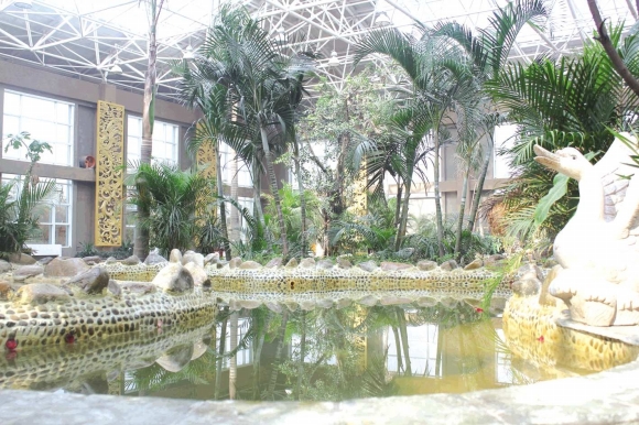 御临泉的室内区是建在一个巨大的热带温室中,温室中的棕榈、芭蕉、翠竹错落有致、郁郁葱葱,仿佛置身北国的“西双版纳”,在如此美的环境中泡温泉定让人心旷神怡。