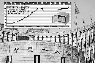 此前央行曾分别于1月、2月和5月三次上调存款类金融机构人民币存款准备金率0.5个百分点。后又于11月10日宣布自16日起上调存款类金融机构人民币存款准备金率0.5个百分点,并于11月19日宣布自29日起再次上调存款准备金率0.5个百分点。
