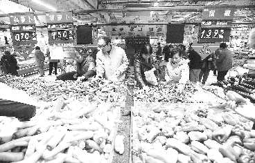 近期省城蔬菜价格连连下跌,在文化西路一超市内,部分蔬菜价格在每斤2元以下。 周青先 摄