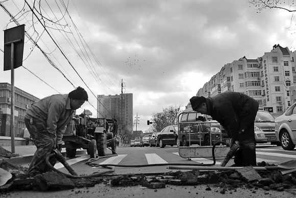 12月12日,在郑州路上靠近青岛科技大学南二门处,施工人员正在铺设光缆为即将要安装的信号灯做准备工作。据施工人员介绍,该路口靠近学校,来往机动车车速较快,安装信号灯可以有效制止超速、违法行驶现象,保证行人安全。 本报记者 张晓鹏 摄影报道