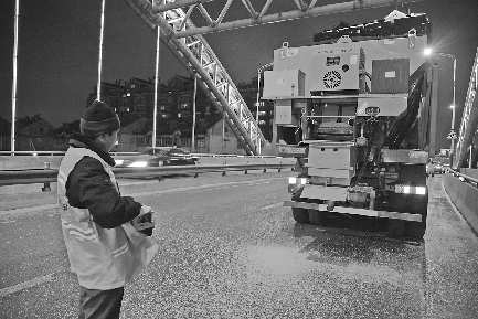 13日下午3时起,环卫部门的撒布机齐齐出动,在市区部分干道和外环高架路喷撒融雪剂,当天共消耗260多吨。
