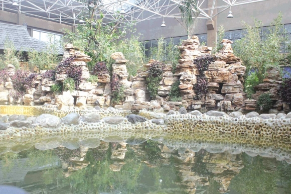 听了这段故事,我们好奇心更加强烈:御临泉到底什么样子?于是拿了手牌,带了泳裤,就迫不及待地向温泉区进发了。室内泉区就是一个高科技大温室,芭蕉、棕榈等热带植物生长茂盛,泉水蒸汽腾腾而起,彷佛置身于云南的西双版纳。入泉区,厅顶由黑色材料构成,伴有无以计数的小灯,一会稍觉昏暗,一会又见星光点点,甚是浪漫;径直入内,灵芝池等70多个别具特色的泡池、富有情趣的“凤栖雅居”、蕴含儒家文化的“鲁圣八汤”、香气馥郁的“百草园”、绵延起伏的“卧龙坡”、动感欢快的“活力阳光区”……十二大景观区别具特色,总给人不一样的享受;入泉池,静泡怡神,轻松惬意,工作人员不时送上一杯茶,悠闲的幸福感也随着温泉的水汽与茗香在空中徐徐升起。
