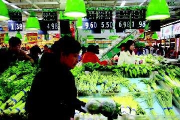 14日,在潍坊市佳乐家超市内,市民正在选购新鲜的蔬菜。据销售人员介绍,虽然13日降下了入冬以来的第一场雪,气温也下降很多,但是超市内各种蔬菜的价格并没有大的变动。近日,潍坊市出台一系列稳定物价措施,起到一定效果。
