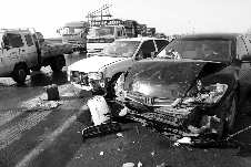 14日上午10点半左右,在潍州路与宝通街路口,由于路滑,一辆农用车刹车不及与两辆轿车连环相撞,除了农用车司机受轻伤外无其他伤亡情况。