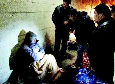 13日夜,德州市救助站工作人员为流浪人员送上食品、御寒的棉衣。自此日起,市救助站启动夜间巡回救助,对市区流浪乞讨人员聚集地进行巡查,实施救助。