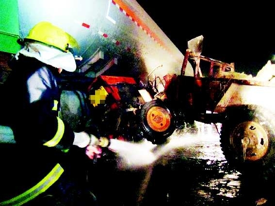 12月14日下午6时许,在德州市天衢路铁路桥涵洞处,一辆四轮拖拉机与一辆危险品运输车会车时发生碰撞,造成运输车油箱内约300升柴油泄漏,现场车辆拥堵,情况危急。消防官兵赶到现场后对泄漏的柴油及时进行淋水稀释,协同交警部门及时排除险情。本报记者 马志勇 见习记者 李梦娇 摄影报道