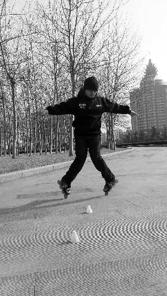 周洪雷玩起轮滑非常偶然,他告诉记者读大二时的那个夏天,正好赶上非典,每天上完课以后挺无聊,一次从电视上见到玩轮滑的镜头,“帅!”他和舍友们一致认为这项运动不错,更重要的是还能够吸引女生们的眼光。于是6个人都买了轮滑鞋,没事就在校园里“游荡”。“轮滑是在2004年进入北方的,比较晚,我们可以说是当时玩得最早的一批。”周洪雷说,起初在大家伙眼里他们是“异类”,后来同学们逐渐被他们的热情活力感染,观看喝彩的人围得里三层外三层,“被崇拜的感觉爽啊!”周洪雷乐呵呵地说。
