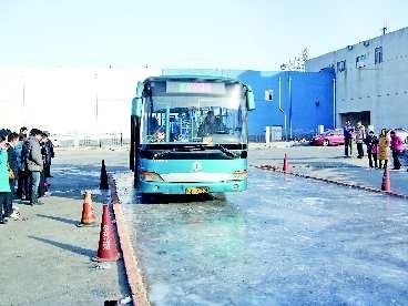 一场小雪之后气温骤降,不少路面出现结冰,给公交运营带来不少麻烦。为了在冬季雨雪天气下保障安全行车,公交恒生公司五队、快速公交公司一队等自制结冰路面,进行防滑演练。 本报记者 王光营 通讯员 侯学辉 李莉 摄