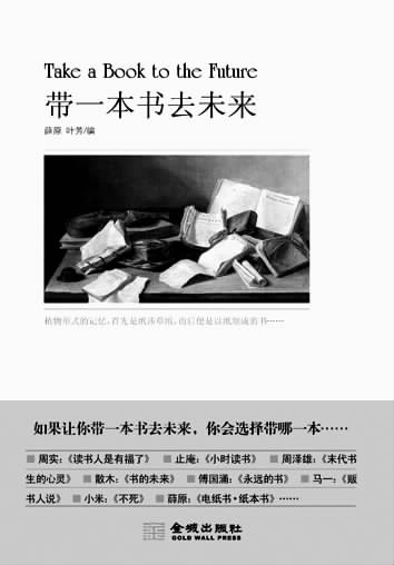 此时薛原与叶芳主编的《带一本书去未来》出版了,六十四位作者年龄不一,既有耄耋老者又有中学少年;身份不一,既有作家学者又有网络写手。无论何种年龄与职业,他们共生于这个时代:这是最好的时代,他们有幸见证了科技的飞速发展;这是最坏的时代,他们也亲眼目睹到传统知识载体走向衰微。处于新旧技术共存的夹缝时代,他们作为读书人对书有什么样的记忆?有什么样的感情?有什么样的读书故事?对未来的图书有何憧憬?我们可以在这本书里找到一些答案。