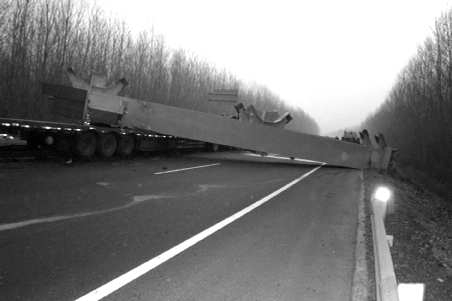 本报12月15日讯(赵超 谢清民)12月15日,青银高速公路(济青段)青岛方向63公里处发生一起平板半挂车单方碰撞中央隔离带事故,车上近20米长的钢设备甩出车外横在高速公路上,将青岛方向的车道完全堵住。省高速公路支队高密大队民警迅速出击,联合路政人员妥善处置,4个多小时后,恢复了道路畅通。