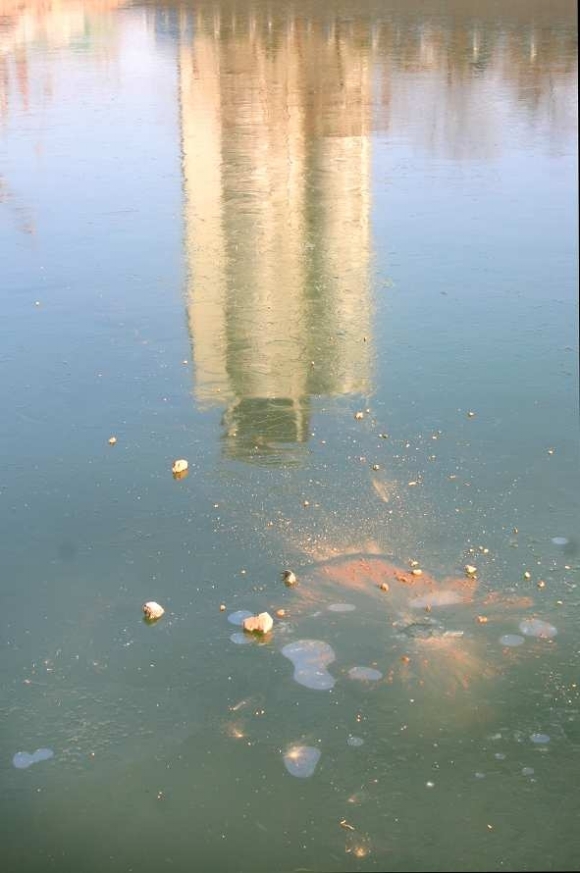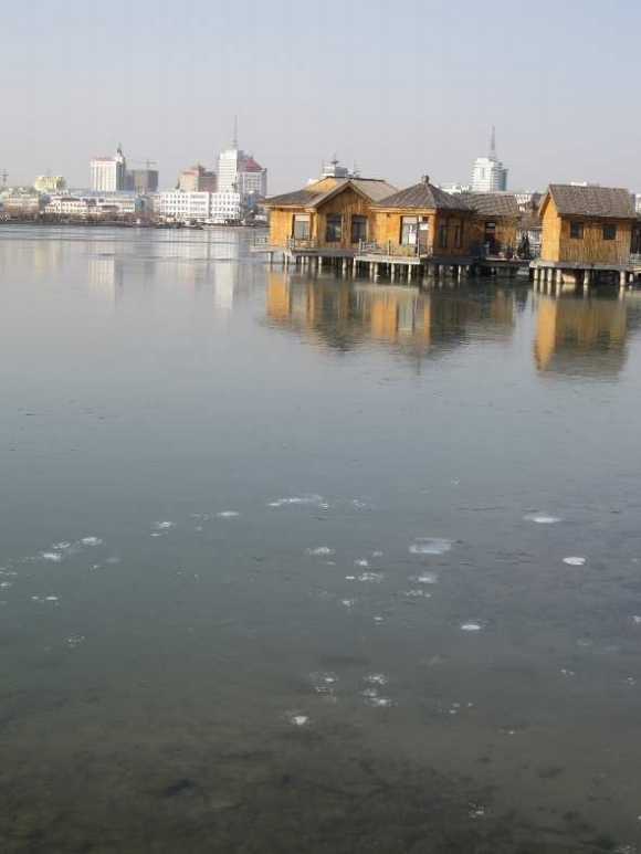 本报记者邹俊美 摄15日,21孔桥以北的东昌湖面上蒙结一层薄冰,没有了碧波荡漾,湖面更像一面镜子。