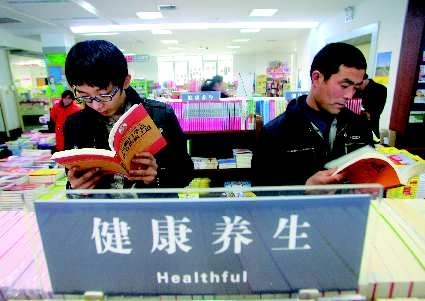天气突然变冷,冬季保健、养生饮食、疾病预防类图书销售跟着红火起来,销量平均翻了一番。图为在市区新华书城,一些市民在选购养生方面的书籍。 记者 廖杰 摄