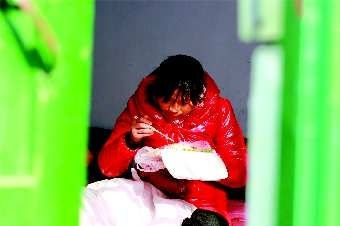 准备就绪后,根据市民打来的热线电话,救助站工作人员首先来到东方红广场,给来自甘肃省的残疾人巨文科送来了棉袄和食品,巨文科不住地表示谢意。