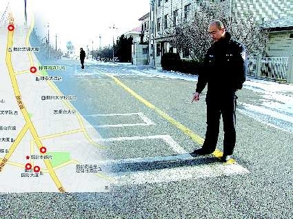15日,交警四大队的民警毕明文带着记者来到埋设感应线圈的路口一探究竟。在滨海中路与黄海城市花园北口的交汇处,民警指给记者看,感应线圈的位置在停止线后40厘米处,形状就是两个方框。