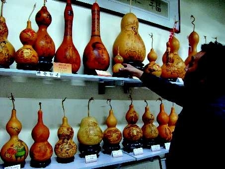 如今,他已经完成了两个这样的“金蝉葫芦”,曾经有人愿意出几万元的高价买下来,他也没舍得卖。“葫芦取其谐音为‘福禄’,有‘镇宅、避邪、纳禄、求祥’之说,在人们的心目中代表着吉祥、多子多福。”葛懋新说,自己送给亲朋好友的葫芦烙画至少也有500多个了,还有很多在店里被客人买走了,看着自己的作品能给别人带来美好的希望,是一件很幸福的事。“做烙画,要有追求完美的执着,人生也该如烙画一般,充满坚韧。”