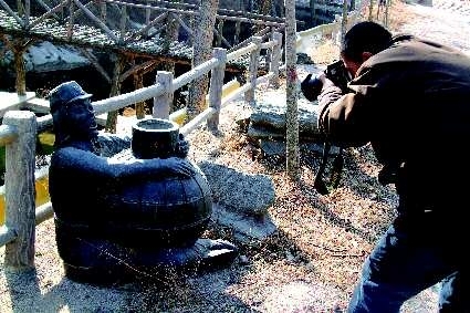 作品描述:海阳地雷战景区的垃圾箱是一日军惊恐地抱着一颗大地雷,形象逼真,让人忍俊不禁。
