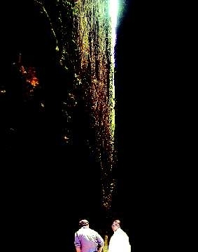 作品描述:两个“重量级”人物往这“一线天”一站,自己进不去,别人也休想进得去。真是二夫把关,万夫莫开。