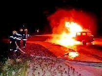 12月16日0时许,禹城市市中路人防广场旁一辆拉油的三轮车突然起火,油桶随时都有可能爆炸,火势直接威胁到相邻20米远的加油站,情况十分危急。禹城市消防官兵在接到报警后,迅速赶到现场。中队指挥员指挥消防战士出一支泡沫枪,很快泡沫将大火覆盖。10分钟后,大火被彻底扑灭。图为消防官兵正在对燃烧的三轮车进行灭火。