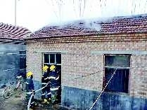 14日下午,禹城市二十里堡芦庄的一位村名在做饭时不慎引发火灾,大火一直从厨房着到了村民民房门口。情况危急之下,该住户的村民请求消防支援。指挥员立即组织消防官兵对周边人员进行疏散,防止因房屋倒塌而危及村民生命。经过近半个小时的奋力扑救,大火被彻底扑灭,所幸没有村民伤亡。图为消防官兵正在着火民房下进行灭火。