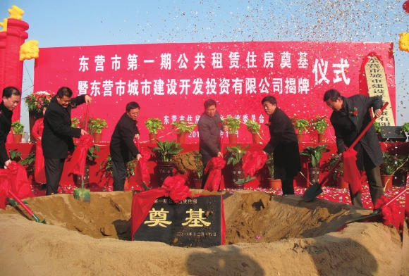 ▲东营市第一期公共租赁住房奠基仪式现场。本报见习记者郝文杰 摄